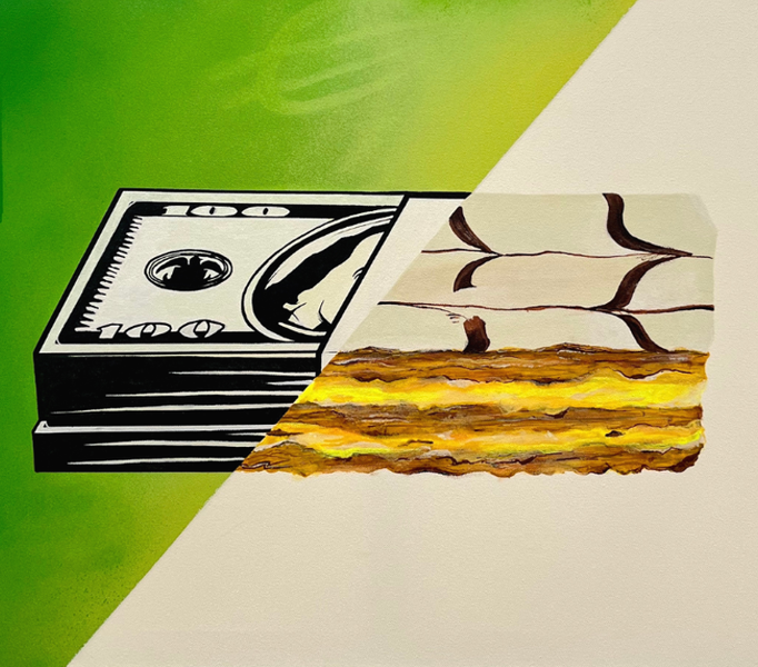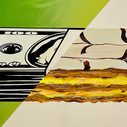 Peinture utilisant des pigments traditionnels mélangés à des résines synthétiques.